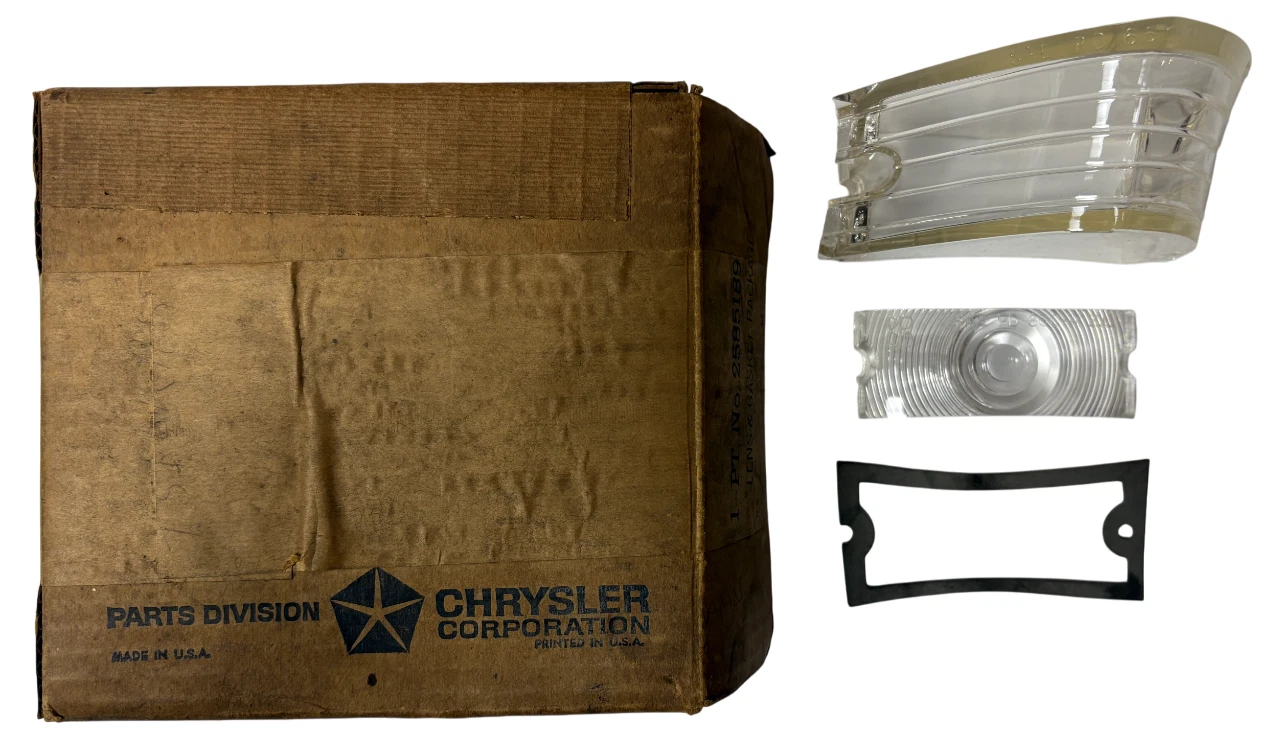 This is a New Old Stock turn signal lens for the LEFT or driver side of the years and models listed below. This is the clear lens for the 300 model and is a original new old stock Chrysler part in original packaging. THERE IS NO GASKET. Has some sealer residue on the mating surface but lens is very nice.