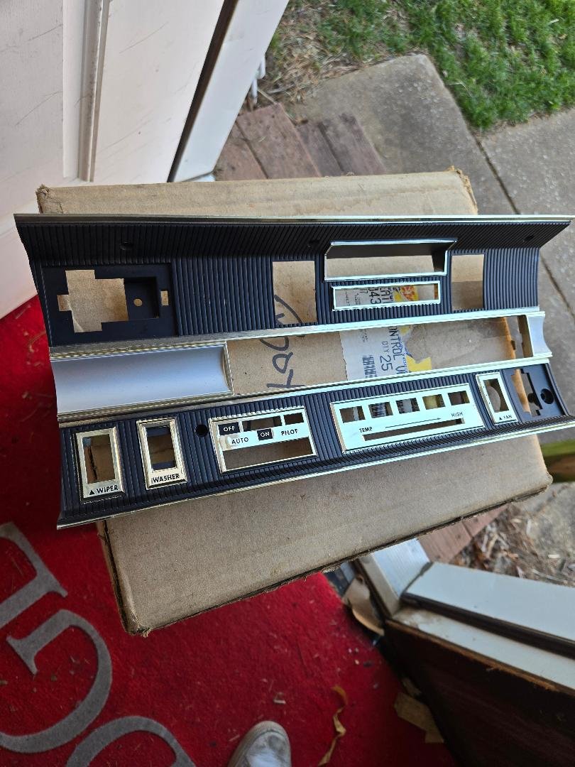 This is a NOS dash bezel for ALL of the years & models listed below WITH AIR CONDITIONING, RADIO & CRUISE CONTROL [auto pilot]. This is the center bezel and is a NEW original Chrysler part.