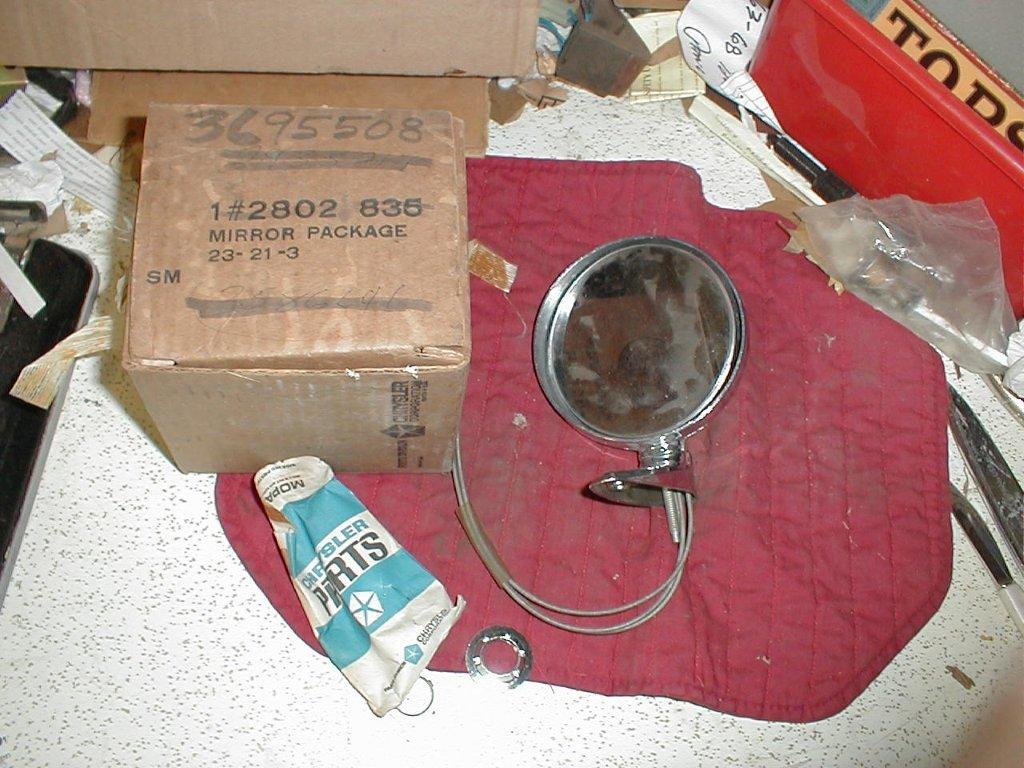 This is the remote control door mirror for the left or driver side of all of the years and models listed below. This is the OE correct mirror for these models with the shorter control cable and has a date code of K-AX-7 [ November 1967]. This is a new old stock original Chrysler part in it’s original packaging.