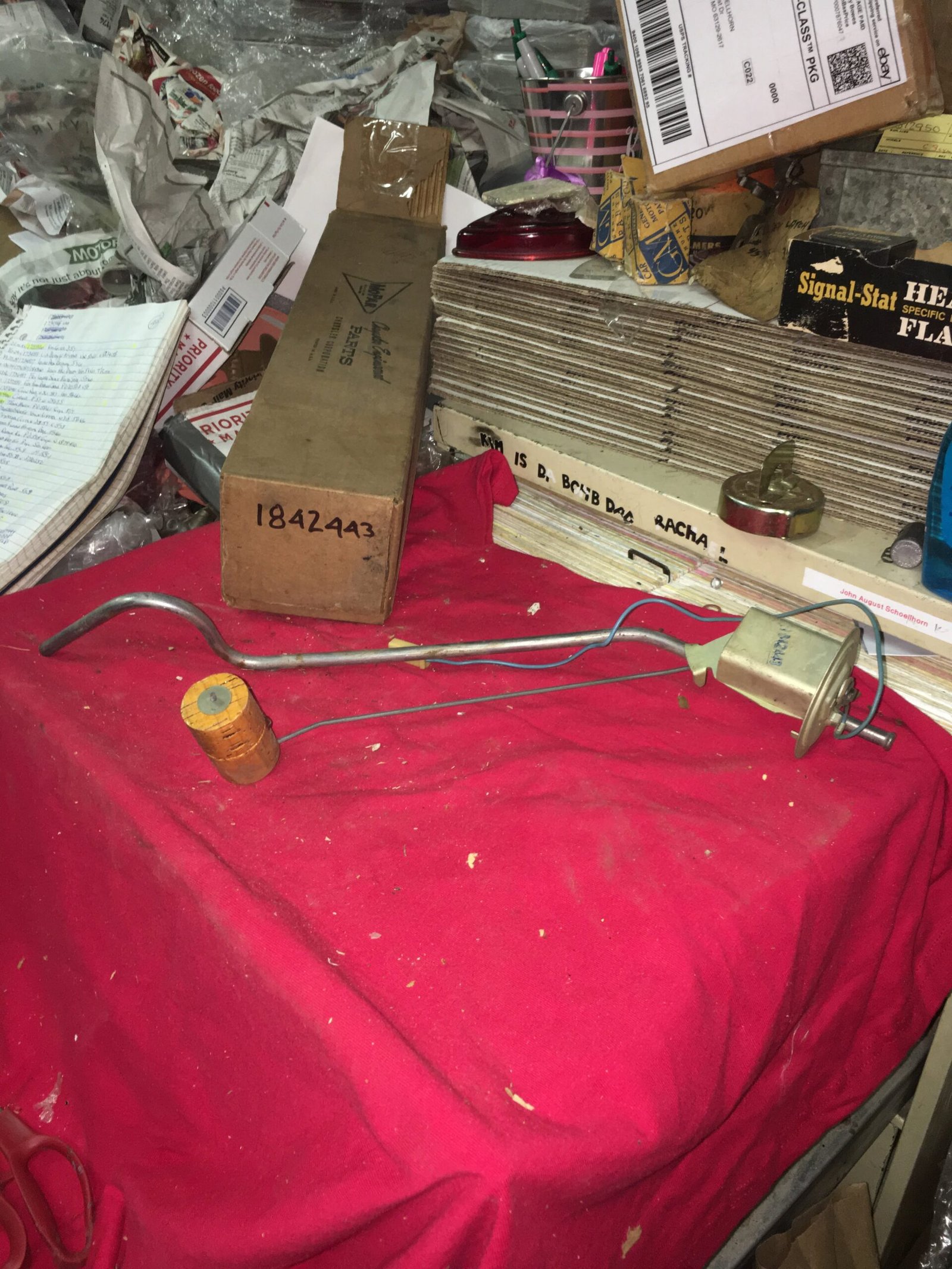 This is a NOS fuel tank sending unit for all the years and models listed below WITH a 23 GALLON FUEL TANK. This is a new old stock original old production type with a brass/cork float and the correct numbers marked on the unit. For the serious restoration.