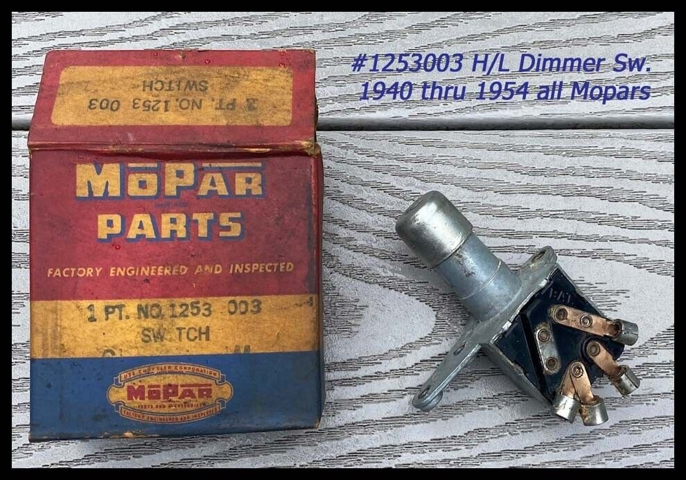 This is a NOS floor mounted dimmer switch for all of the years and models listed below. This is a original NOS Mopar part and comes in it’s original packaging if available.