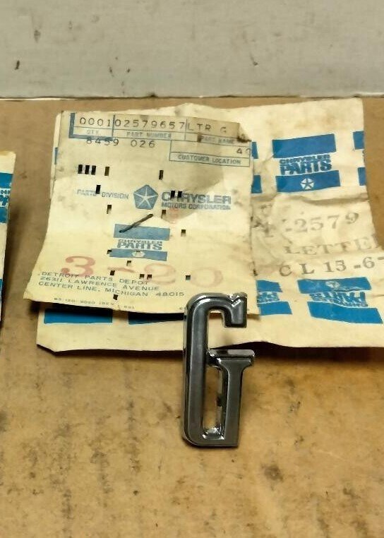 This is a NOS hood nameplate for ALL of the years and models listed below. This is the letter “G” emblem for the front of the hood and is a NOS piece with the correct finish in it’s original packaging if available. I also have the D [2579655] & O [2998231] letters.
