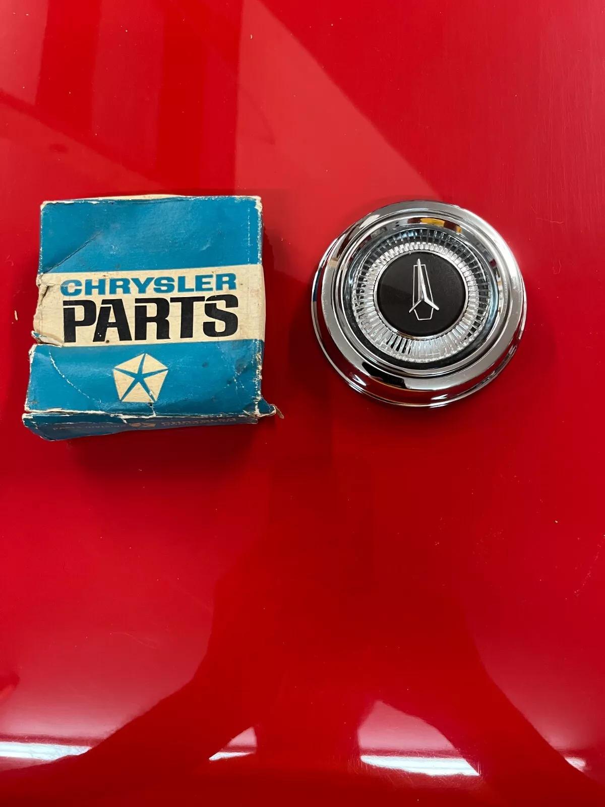 This is the circular horn ornament or steering wheel ornament for all of the years and models listed below WITH FULL or HALF HORN RING. New old stock original Chrysler part.