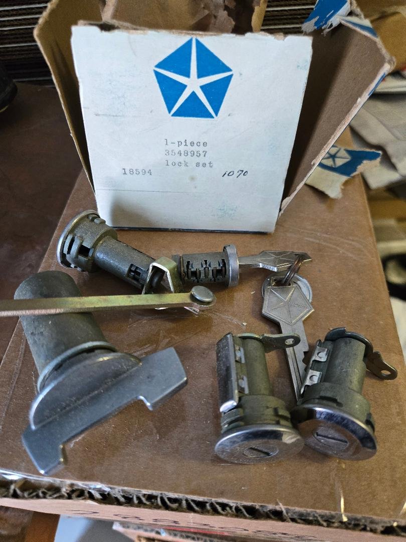 This is a set of NOS ignition & door locks for all the years and models listed below WITH TILT WHEEL & MANUAL operated tail gate. The ignition & door locks are the same as any 1971-2 B Body. These are new old stock original Chrysler parts in original packaging. Correct era Chrysler Corp keys.