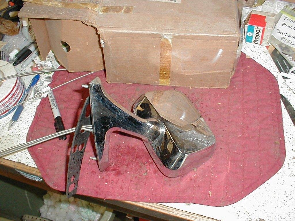 This is the remote control rectangular door mirror for the left or driver side of all the 2 door models of the years and models listed below. This is a new old stock original Chrysler part.