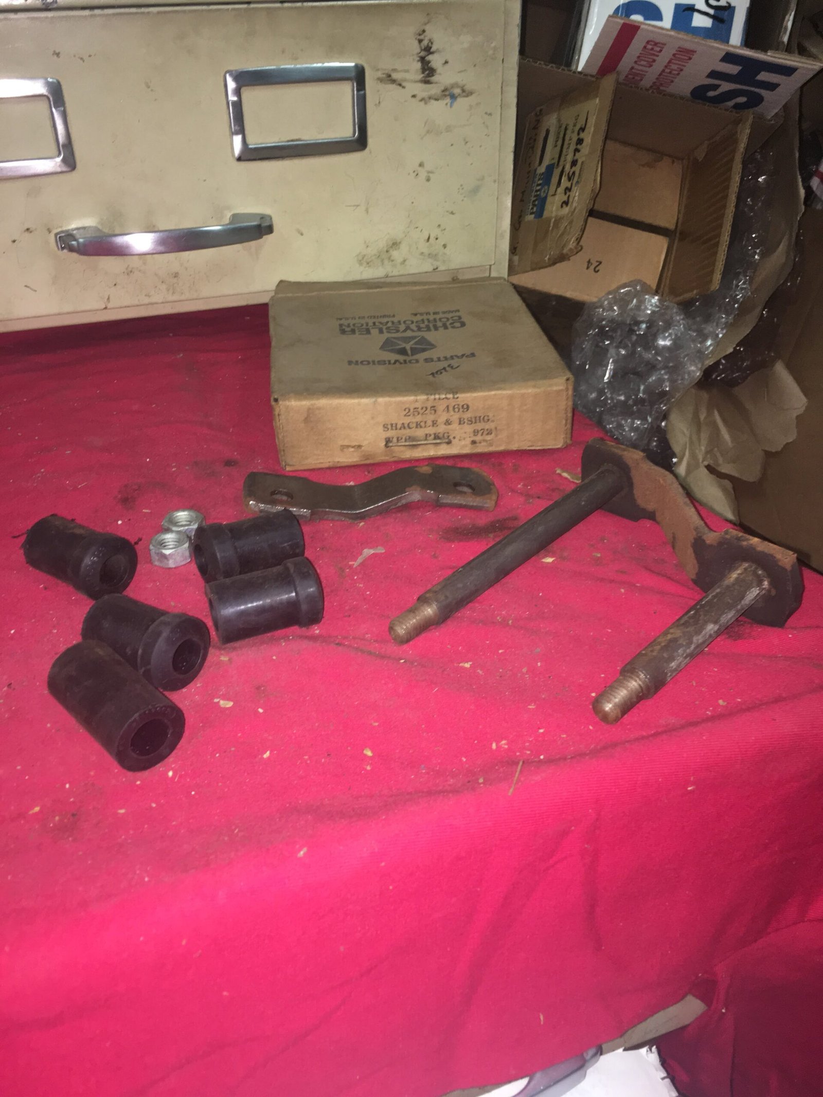This is a NOS rear spring shackle package for ALL of the years and models listed below. This fits either side. NEW original Chrysler part.