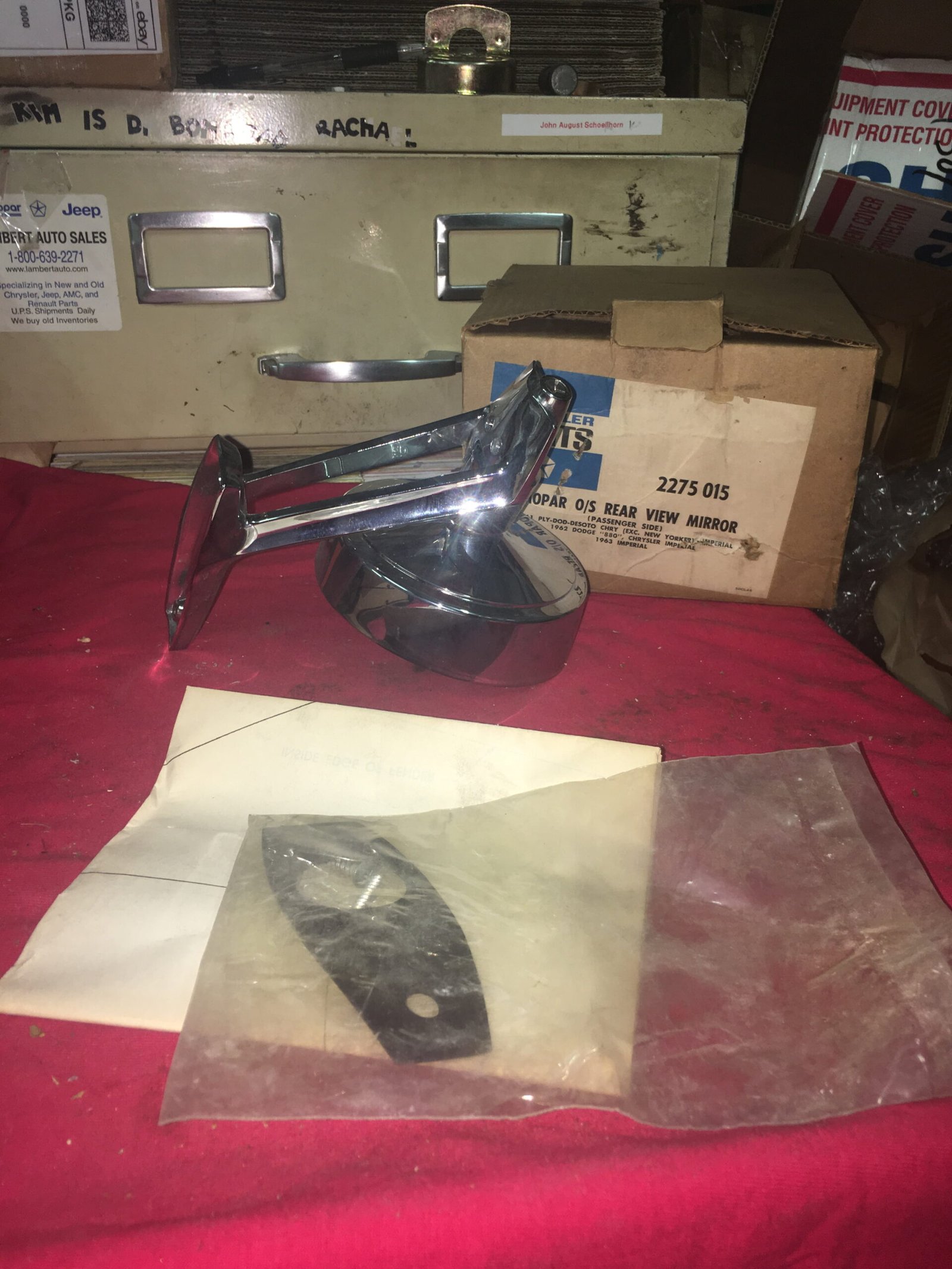 Be the first to review “NOS Mopar Right Dual Post Rear View Mirror 1961-3 Plymouth Dodge Chrysler Imperial”