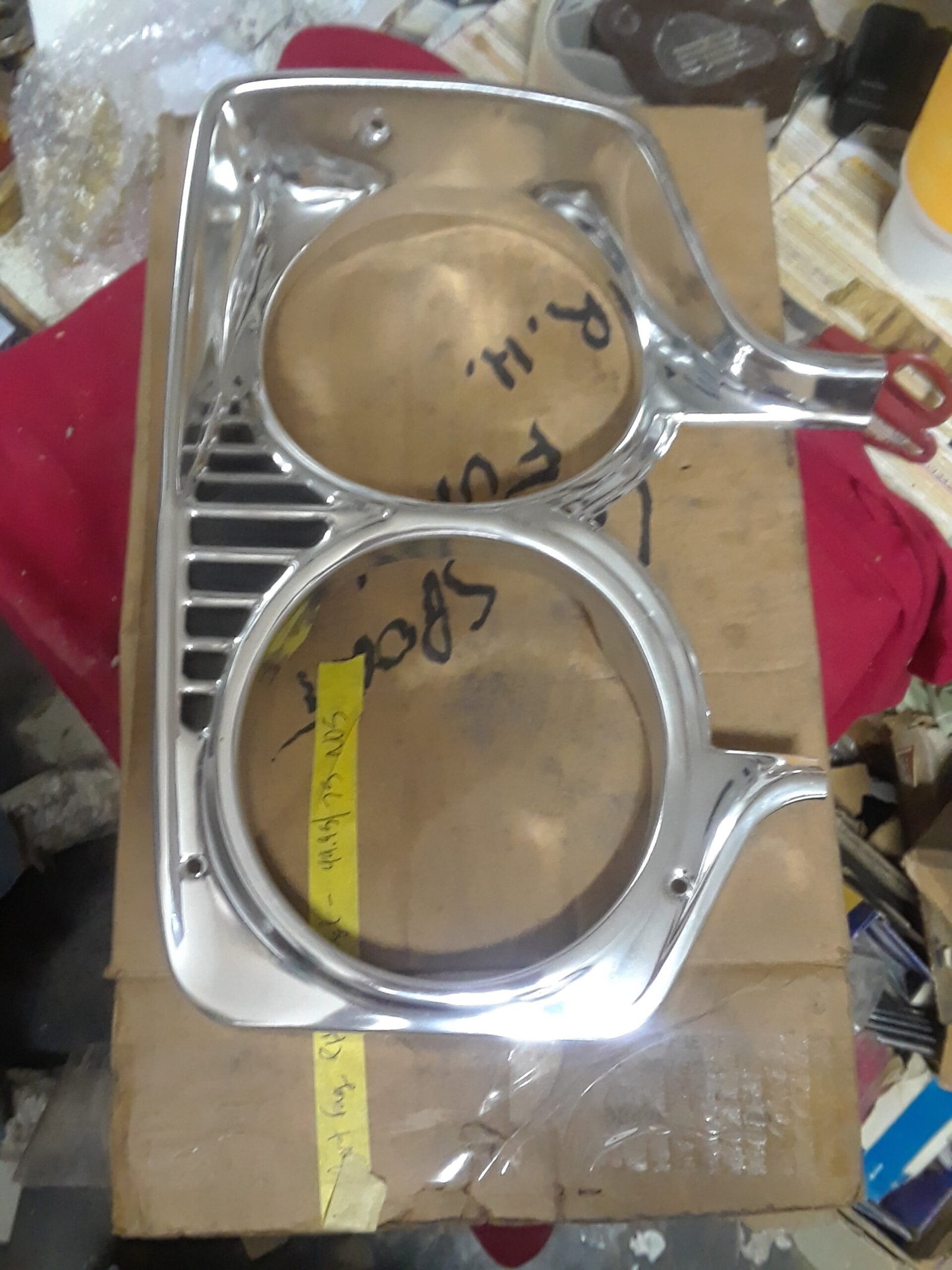 This is a NOS headlight bezel for the models and years listed below. This is the RIGHT or passenger side for these models. This is a new old stock original Chrysler part. Matching LEFT bezel [2578225] is also available on this site.
