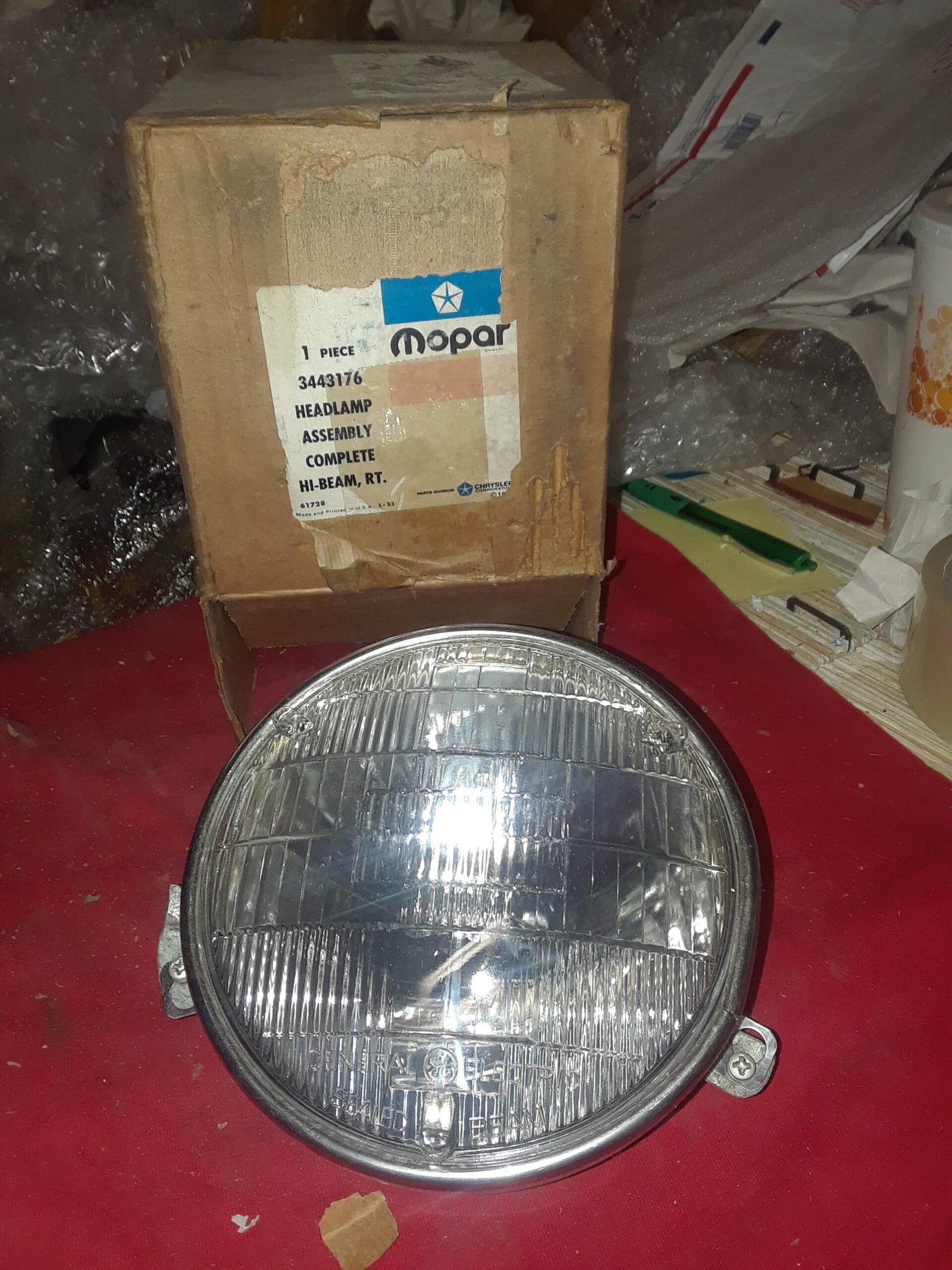 This is the headlight assembly for the right or passenger side HIGH BEAM [2 prong] for the models and years listed below with a 4 headlamp set up. This is a new old stock original Chrysler part in original packaging. Includes bulb, bucket, & retainer. Matching LEFT hi beam lamp [3443177] is also available on this site