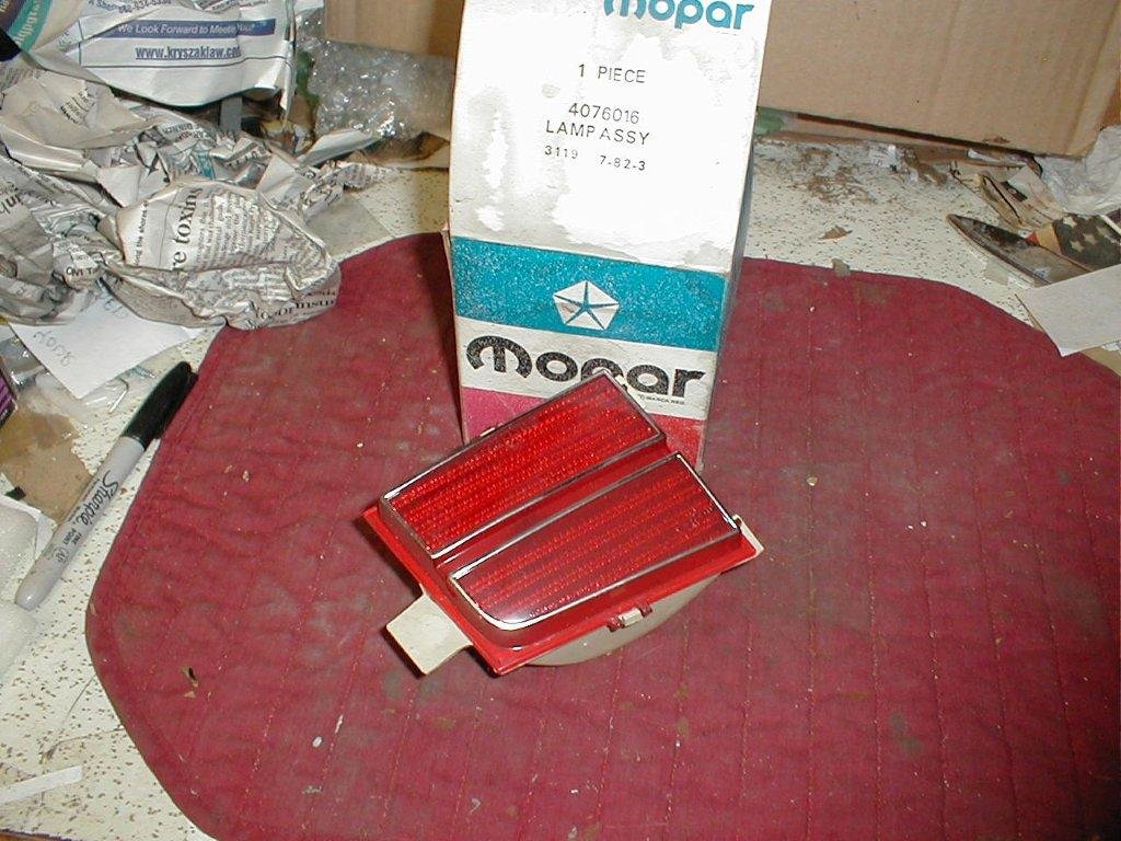 This is a NOS side marker lamp for the RIGHT or passenger side REAR of all the years and models listed below. This is a original NOS Mopar part in original packaging. This is the RED lamp for the rear. Matching LEFT lamp [4076017] is also available on this site.
