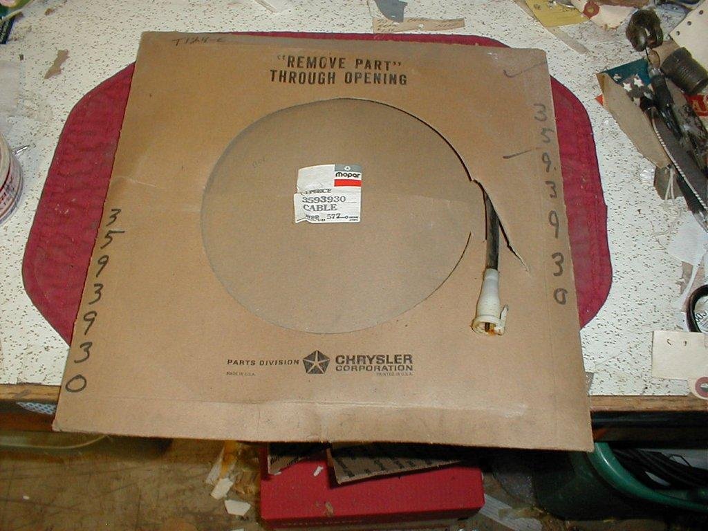 This is a NOS speedometer cable for ALL of the years and models listed below WITH OUT CRUISE CONTROL. This 55 inch cable is a NEW original Chrysler part and it comes in it’s original packaging. This cable runs from the speedometer to the transmission. This is the original cable and housing and is 100% restoration correct. One year only.