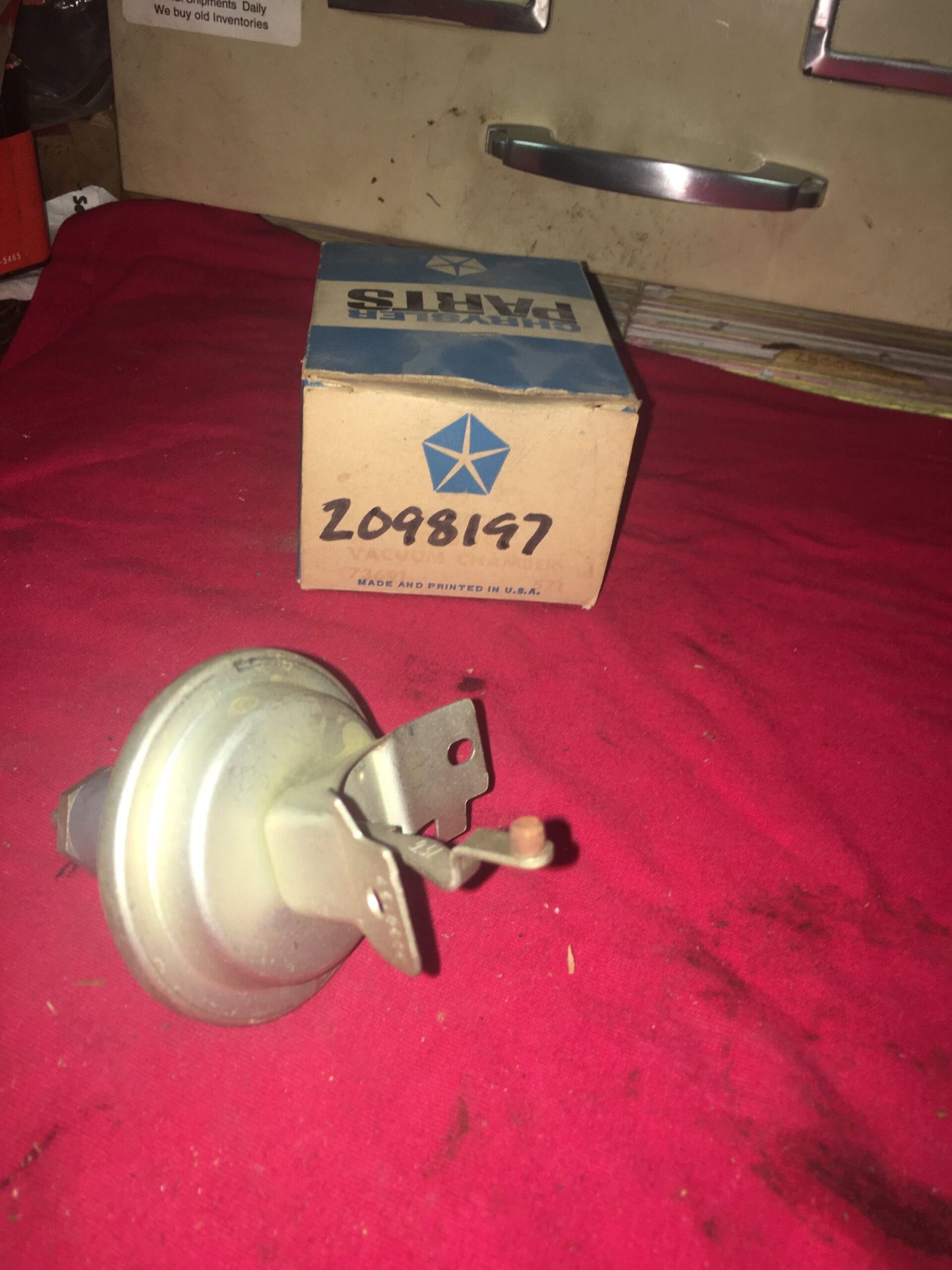 This is a NOS vacuum advance unit for the distributor for the years and makes listed below WITH SINGLE BREAKER DISTRIBUTORS. This is a original NOS Mopar part in it’s original packaging. Distributor numbers are 2095530 & 2095987.