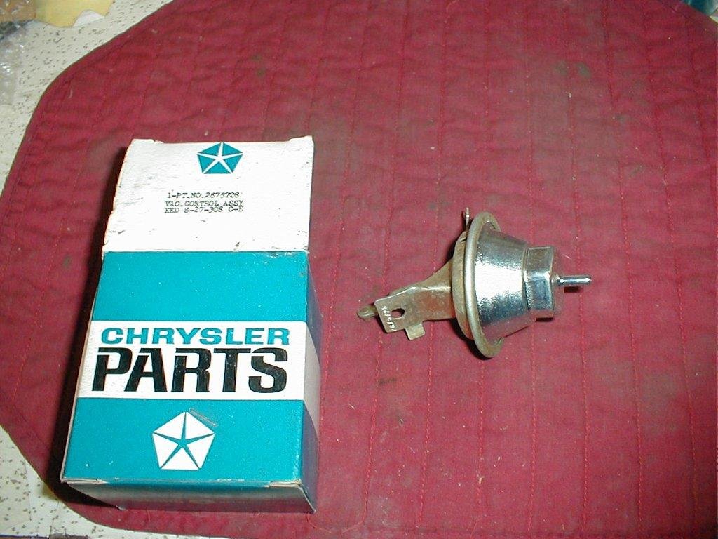 This is a NOS vacuum advance unit for the the years and makes listed below with 383 cubic inch engines with 4 barrel carburetors and distributor #’s 2875731; 2875732; 2875750; 2875751. This is a original NOS Mopar part in it’s original packaging. Does have some discoloration but it’s a new original with the part number on the shank.