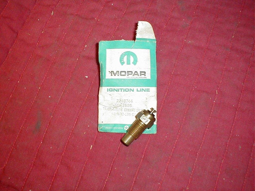 This is a NOS temp sending switch for all of the years and models listed below USING a AUTOLITE or KING SEELY switch. This is a original NOS Mopar part in original packaging if available. This switch screws into the engine block, intake, or cylinder head and works your dash temperature gauge.